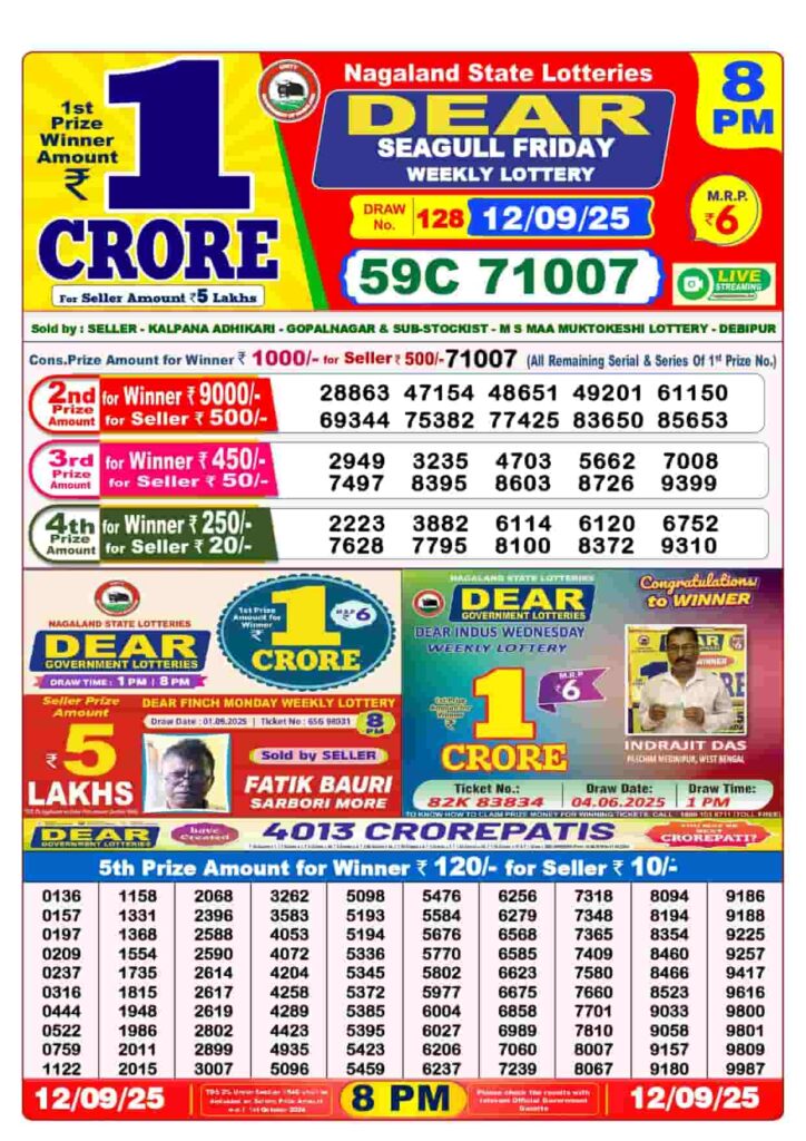 Nagaland Dear Seagull Friday Lottery Result – 12 September 2025 (8 PM)